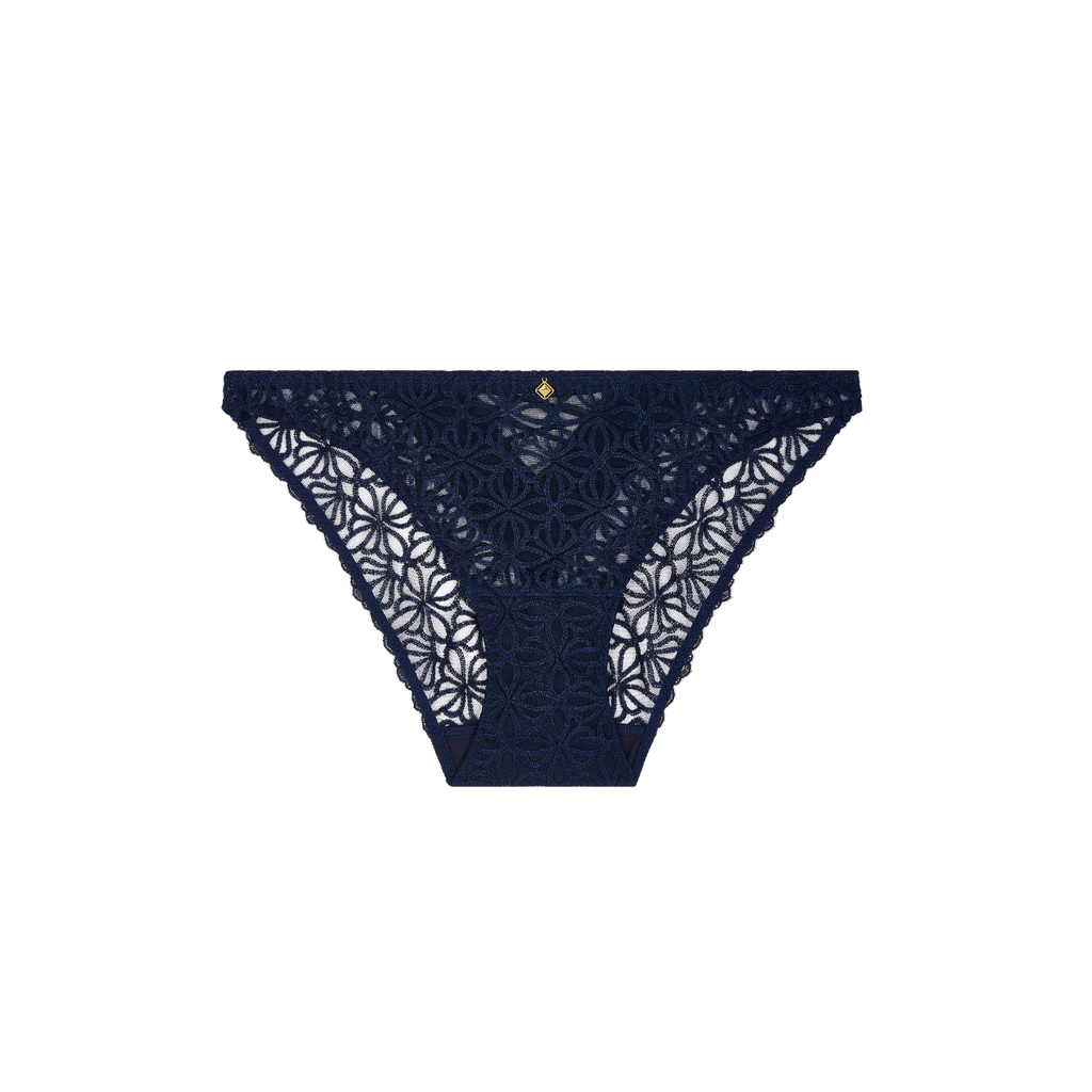 The Italian brief with beautiful lace that goes all around the body to ensure that there is no VPL. It sits flush against the body and has a cut out detail at the top of the back accented by a gold bar.