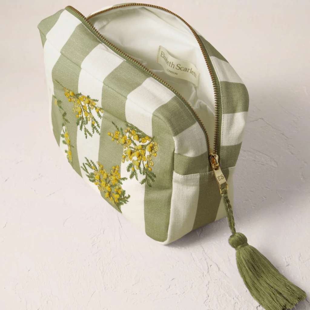 • Elizabeth Scarlett Mimosa Stripe Canvas Printed Wash Bag in Green.
