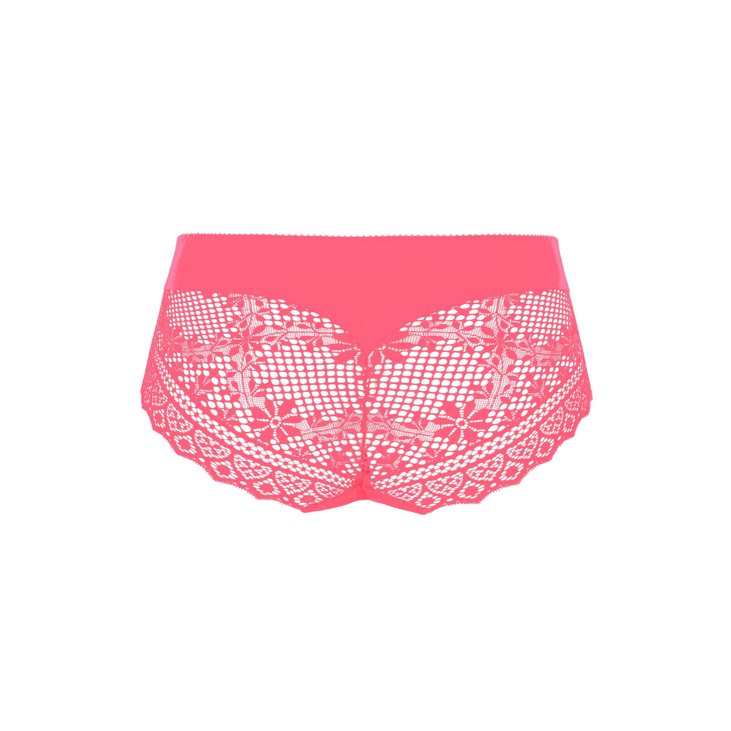 • Fit: If you are after a fuller pretty knicker, this is the right shape for you! The panty now has no elastic around the bottom, making it easy to wear with most clothes. The high waist style offers support and the soft lace creates a pretty detail.