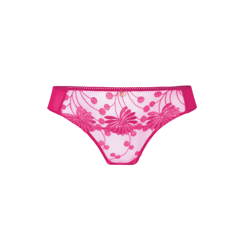 The Tess thong is gorgeous in tulle with an embroidered front and fold tulle back to give a smooth line under clothes while being extremely comfortable. The style is elevated by a gold embellishment at the centre front.
