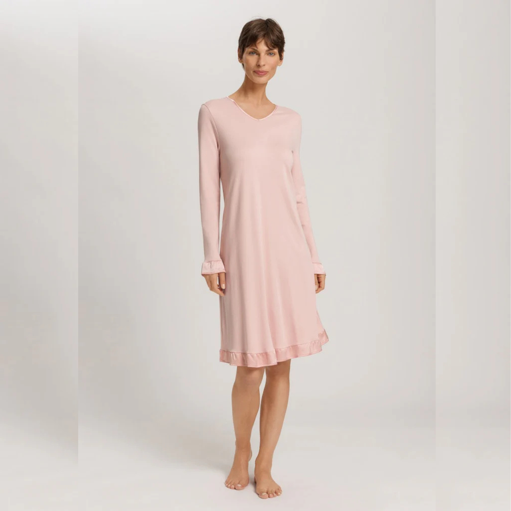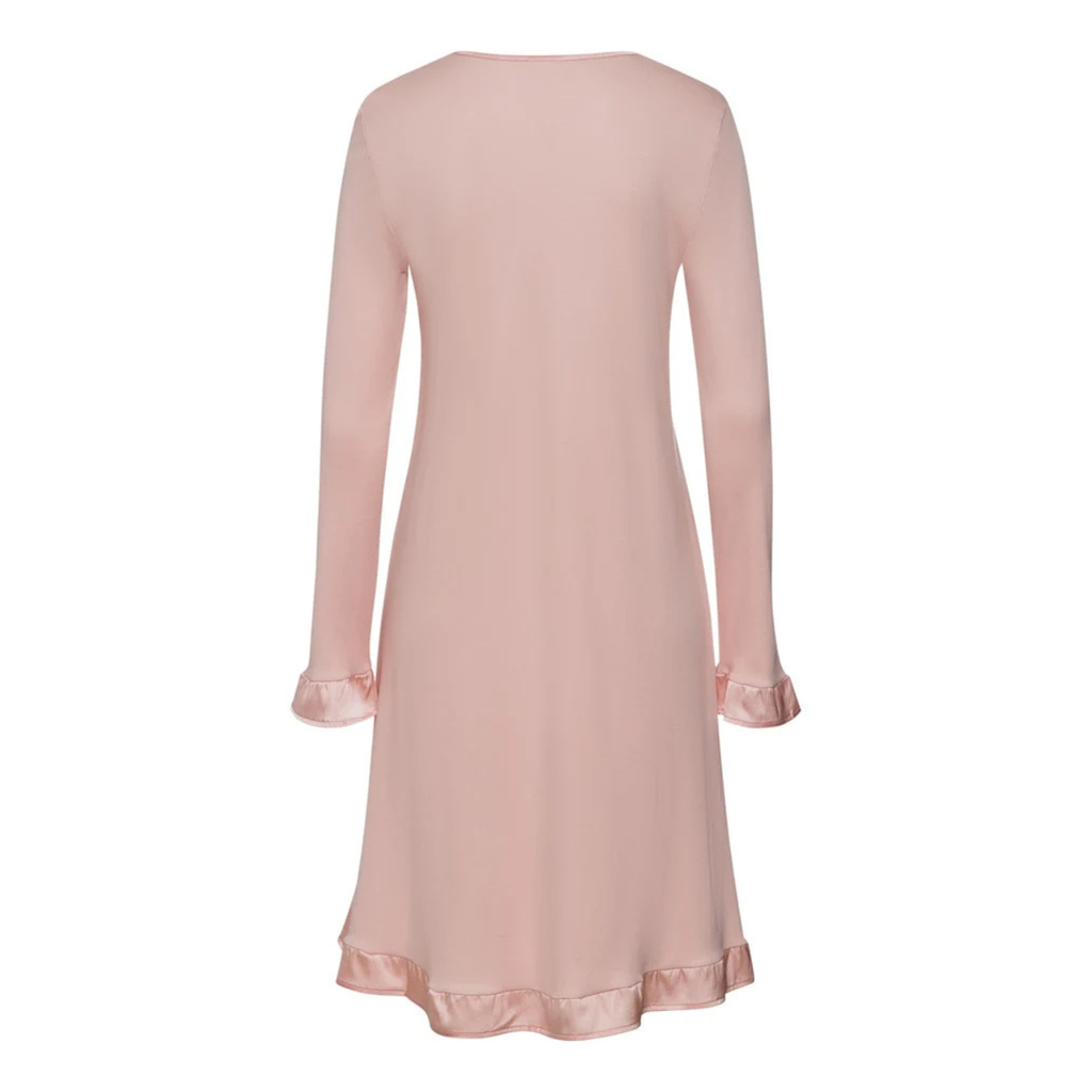 • Silk ruffle detail on the cuffs and hem of the nightdress.