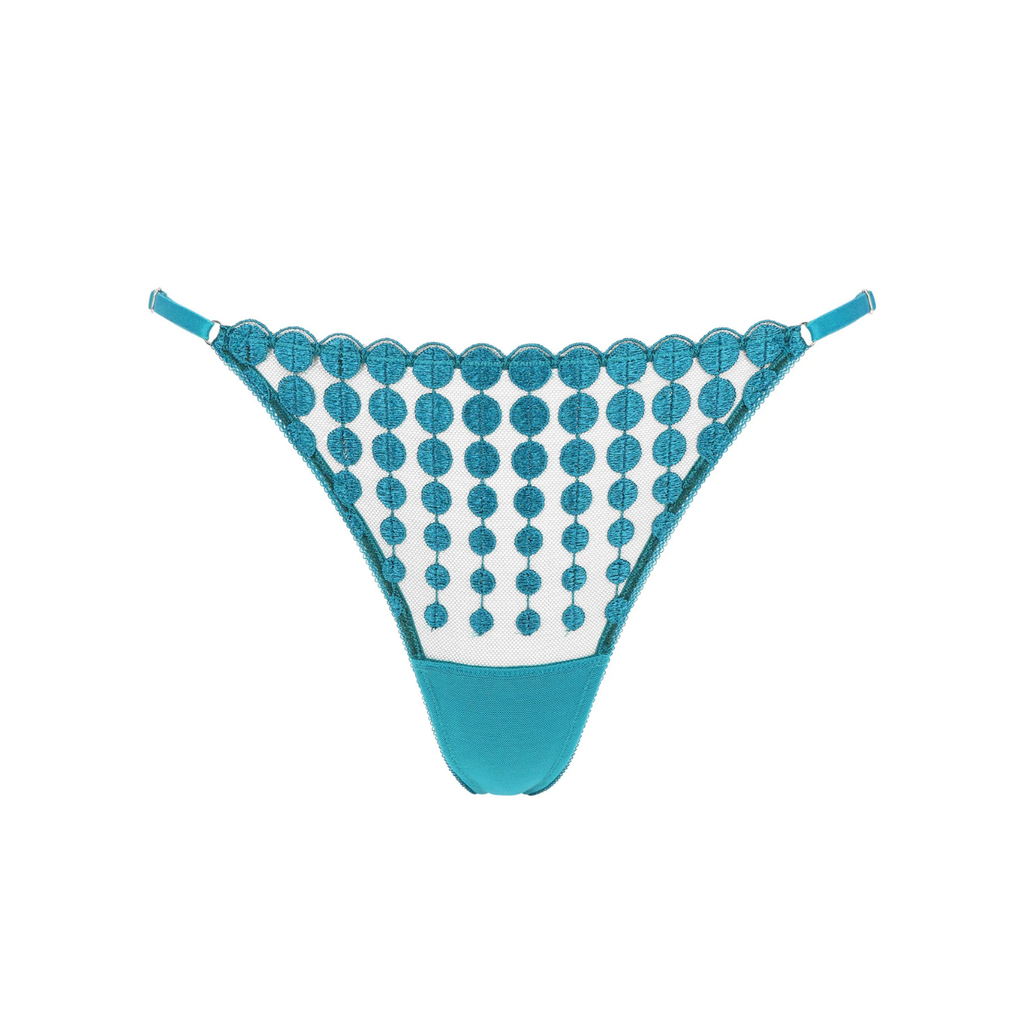 The Deco Dots thong is a mid-rise style that sits high on the hip. With adjustable sides for maximum comfort, the front showcases stunning vertical embroidered dots and the back has a seamless construction in ultra-fine double tulle that sits perfectly flush to the body for a smooth line ensuring no VPL!