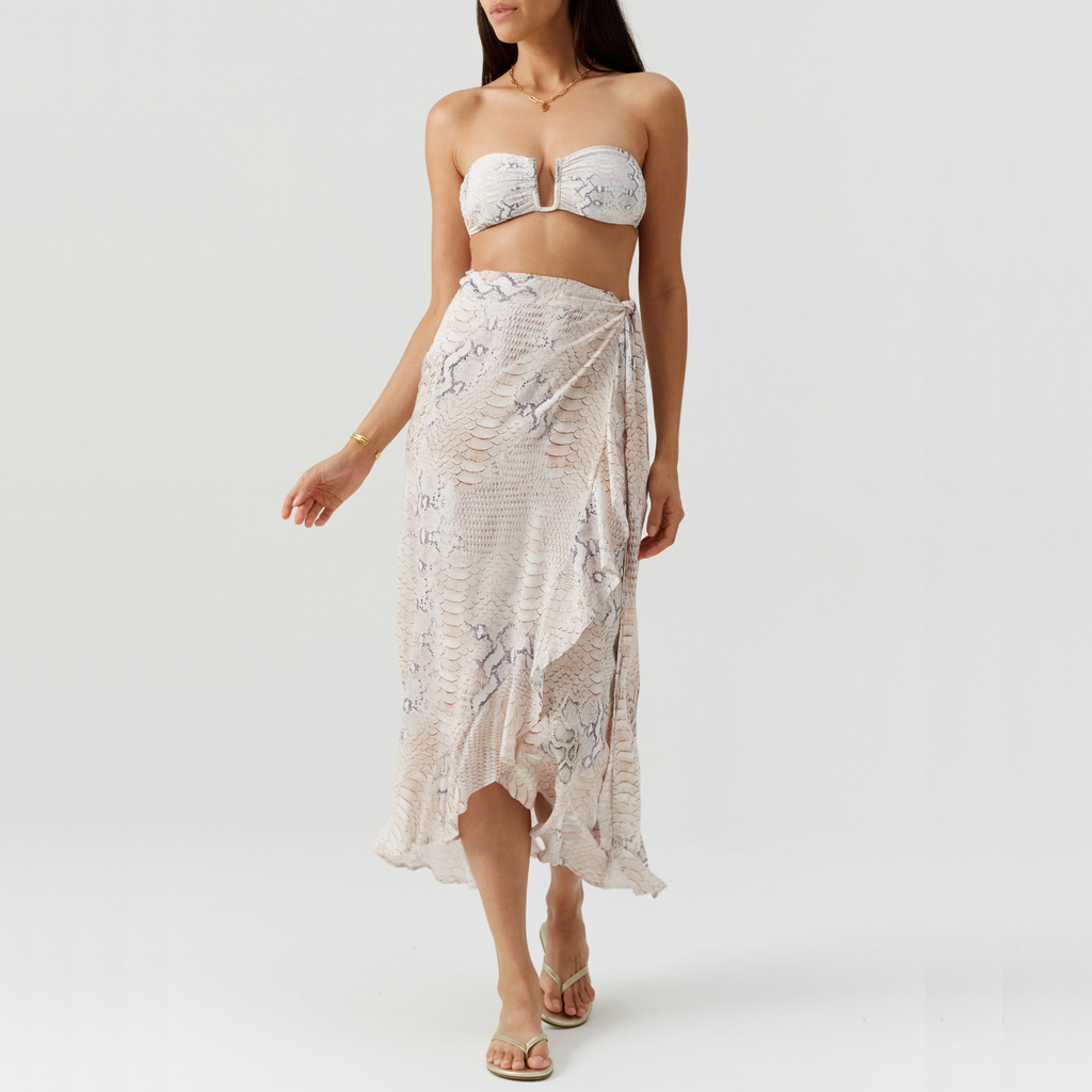 Melissa Odabash's Danni Lizard Skirt is the perfect wrap around skirt. Incredibly easy to throw on whether it be for a beach day, to go out to lunch or dress up for the evening with some heeled sandals, a body and some gold jewellery, this skirt can cover all bases of your next getaway. Pair with the matching print swimwear for a truly stunning co-ord.