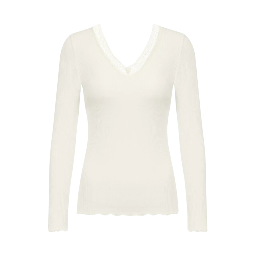 The long sleeved top has a lace lined v-neckline and rolled hem. The top is perfect all year round, either as a top paired with trousers, as loungewear with your favourite joggers or as a base layer on those colder days.