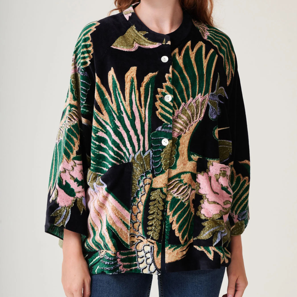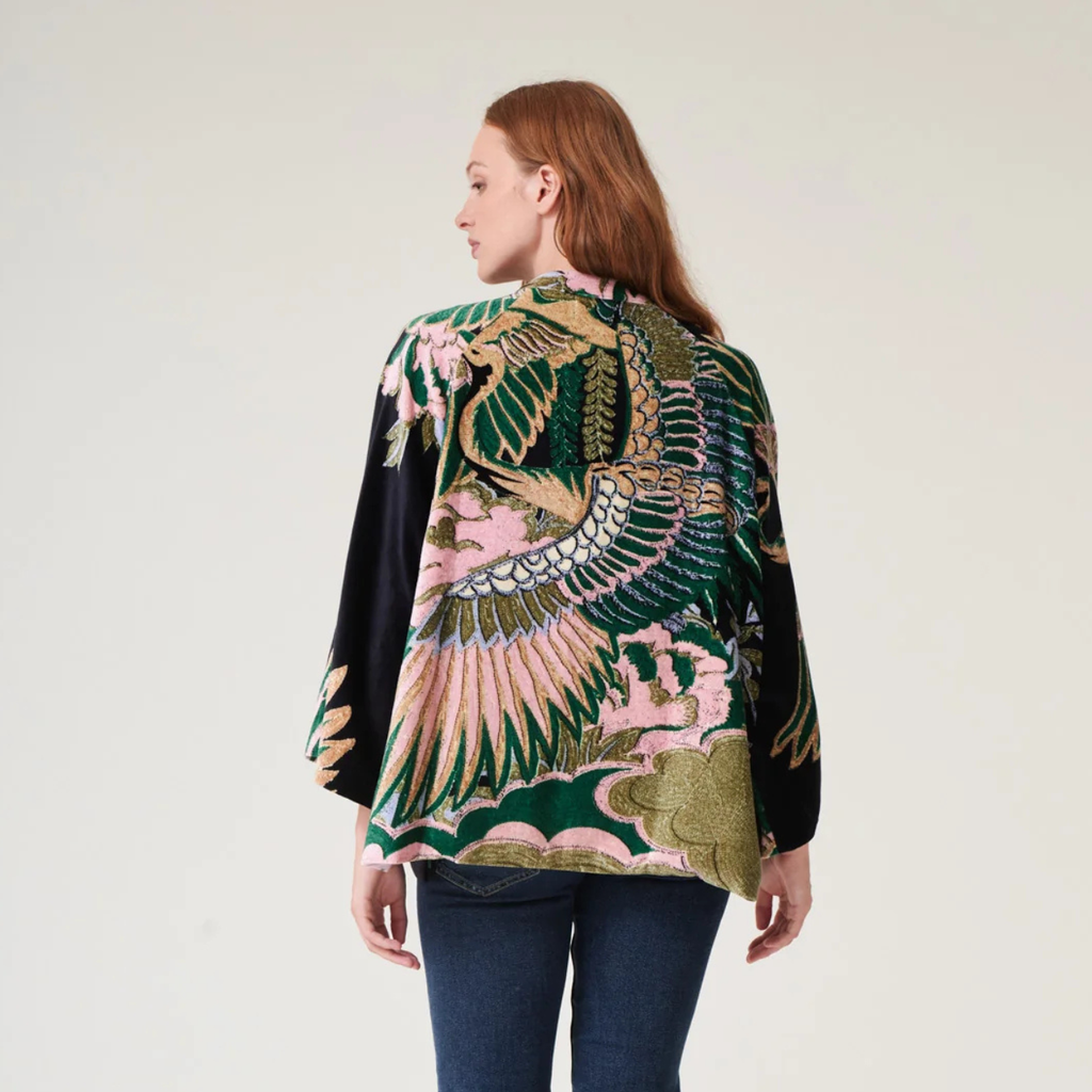 • One Hundred Stars Crane Emerald Velvet Jacket.