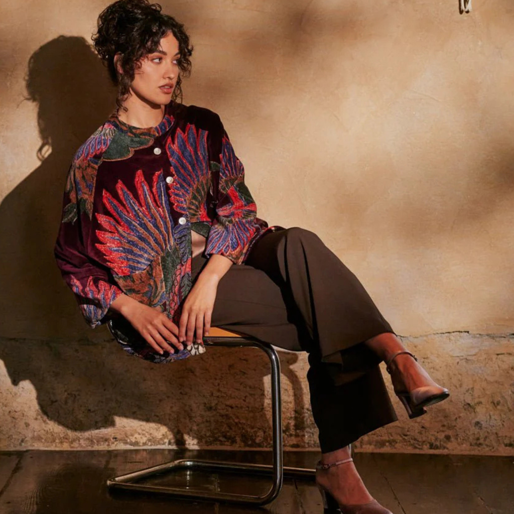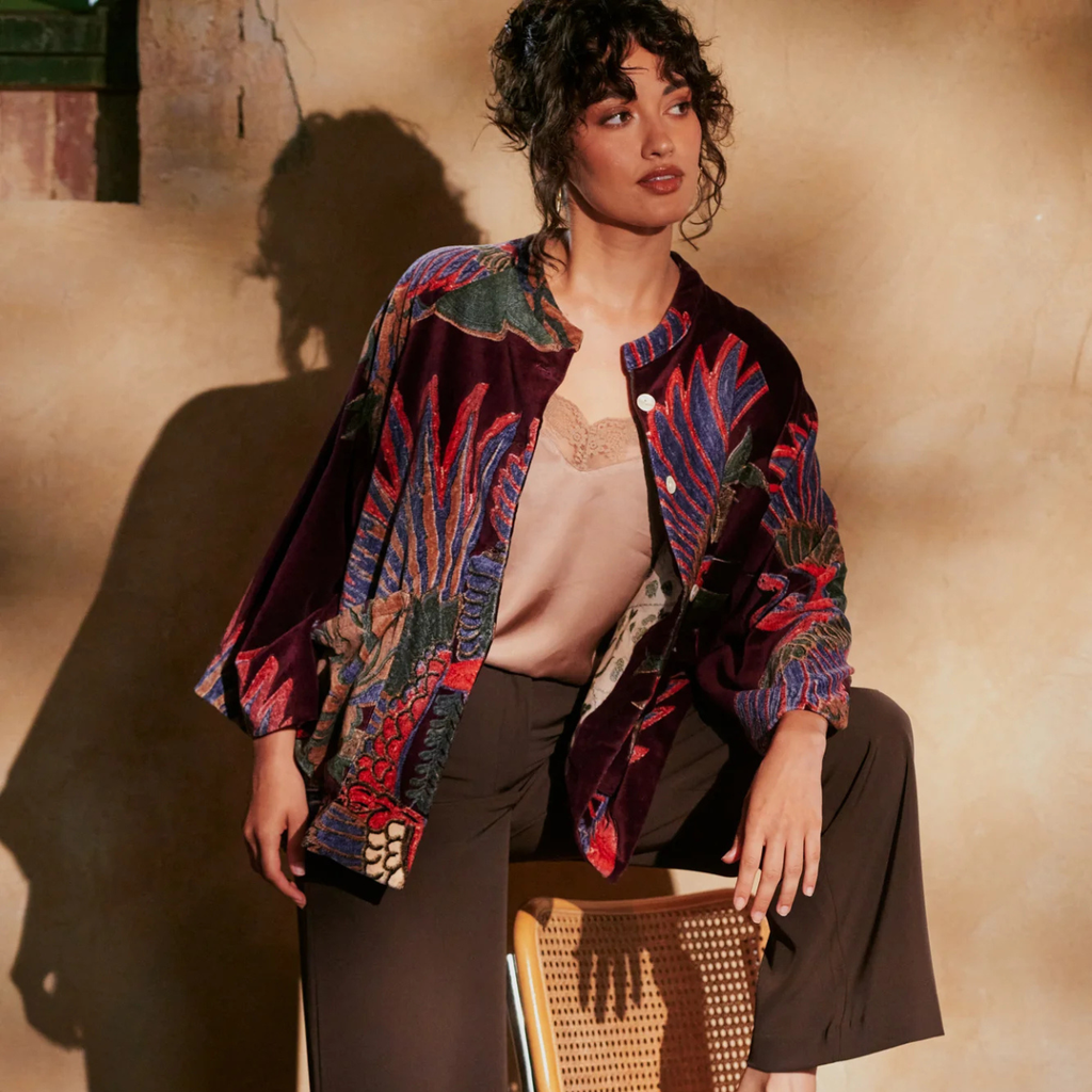 • One Hundred Stars Crane Plum Velvet Jacket.