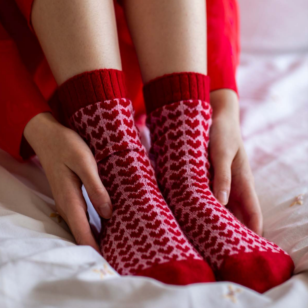 Made in their family-run mill in the Scottish Borders, Rosie Sugden's sumptuously soft bed socks are a real treat for your feet. The socks are individually hand linked at the toe to ensure ultimate comfort and fit. They are also knitted with a small percentage of nylon to create longer wear.