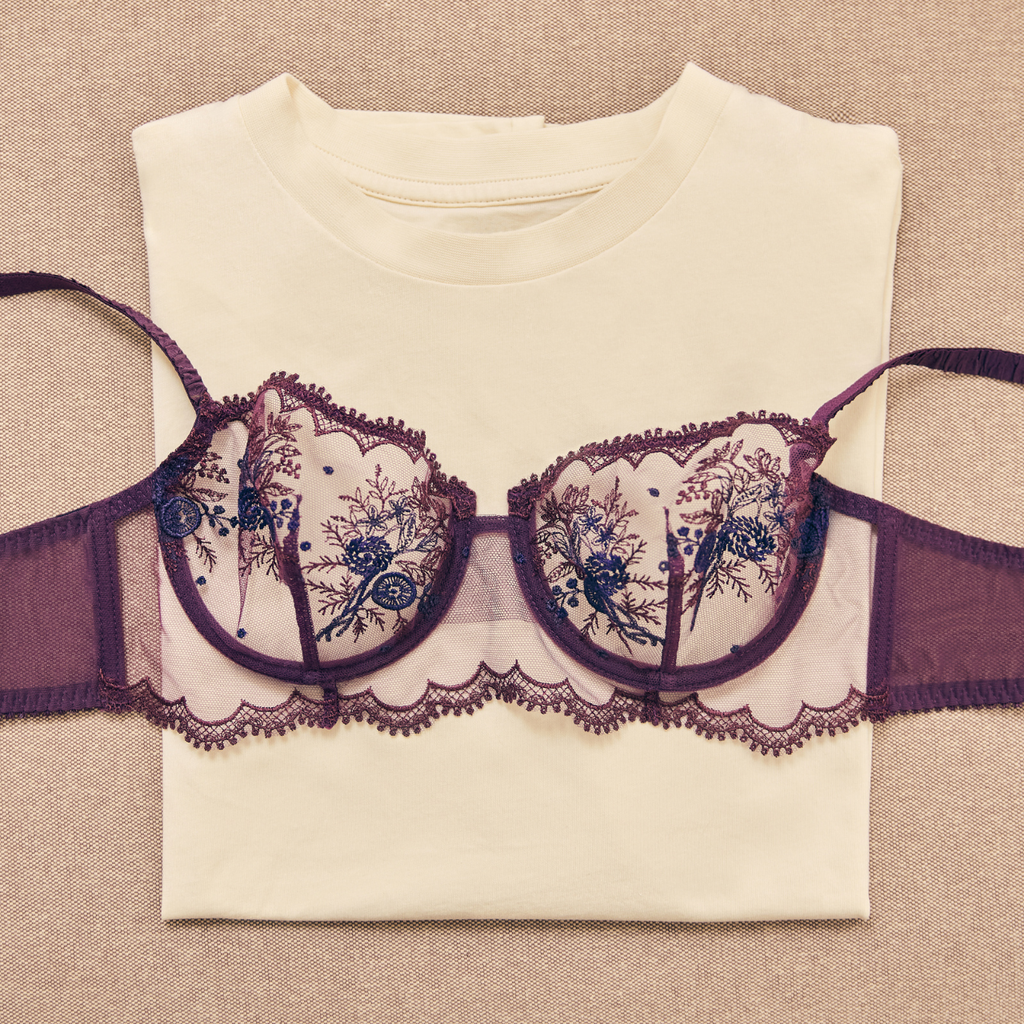 Simone Perele's Intrigue collection is gorgeous while also being great to our environment, using recycled embroidery thread and knitted fabrics. Now in the new seasonal colour 'Fig' which is a lovely rich plum purple with contrasting blue embroidery.